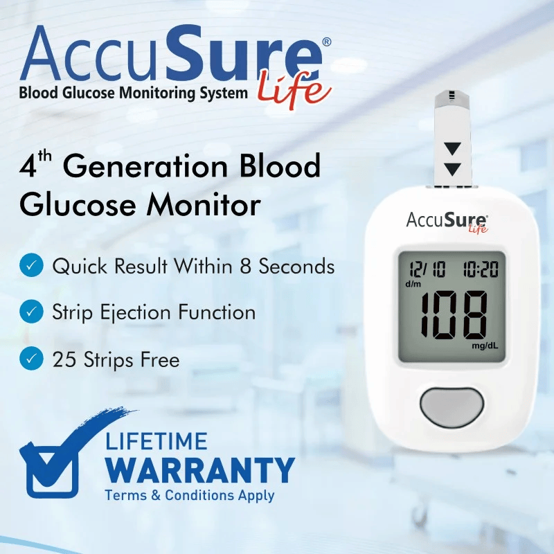Discover the advanced Accusure glucometer, built for accuracy, speed, and effortless control.