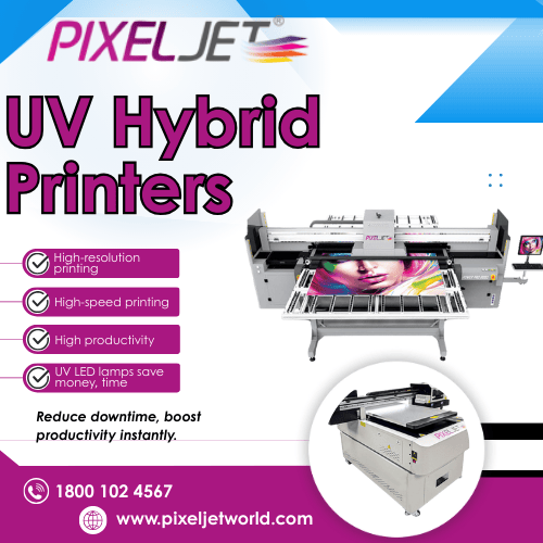 Experience bold performance with Pixeljetworld and its advanced UV Hybrid Printers built for precision and speed. At Pixeljetworld, every machine delivers ISO-certified reliability, 100% quality assurance, and a best price guarantee for smart buyers. Our UV Hybrid Printers and LSI-powered UV Flatbed printing machine solutions ensure crisp results, fast output, and trusted global delivery. Expect powerful productivity, seamless media handling, and unmatched durability. Shop smart with premium technology designed for high-volume excellence. Order Now. Connect Today. Explore Offers crafted for professionals demanding superior value and fast delivery. Upgrade to trusted quality with UV Hybrid Printers and elevate your production instantly.