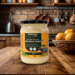 Certified Organic Buffalo Ghee is a high-quality, nutrient-dense pure buffalo ghee made from organic, grass-fed buffalo milk using the time-honored bilona method, ensuring exceptional purity and authenticity. This premium buffalo ghee is slow-prepared to retain its rich golden color, aromatic flavor, and vitamin-packed composition, making it ideal for ketogenic diets, high-heat cooking, Ayurvedic wellness routines, and everyday meals. With no preservatives, chemicals, or artificial additives, it offers a clean, natural source of healthy fats and essential nutrients. Its bold taste, long shelf life, and premium consistency make it a trusted choice for mindful consumers seeking healthier, traditional, and organic cooking options.