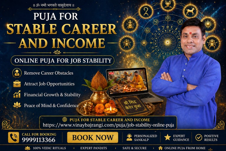 Build confidence in your professional life with trusted Vedic rituals guided by Vinay Bajrangi. This powerful puja for stable career and income is specially designed to reduce workplace challenges, strengthen financial security, and attract long-term career growth. Personalized puja rituals are performed with proper Vedic methods to support peace, recognition, and positive professional opportunities. Secure your booking today to receive spiritual guidance and divine blessings that help improve job consistency, financial balance, and success in your career journey with greater stability and confidence. Call us now 9999113366