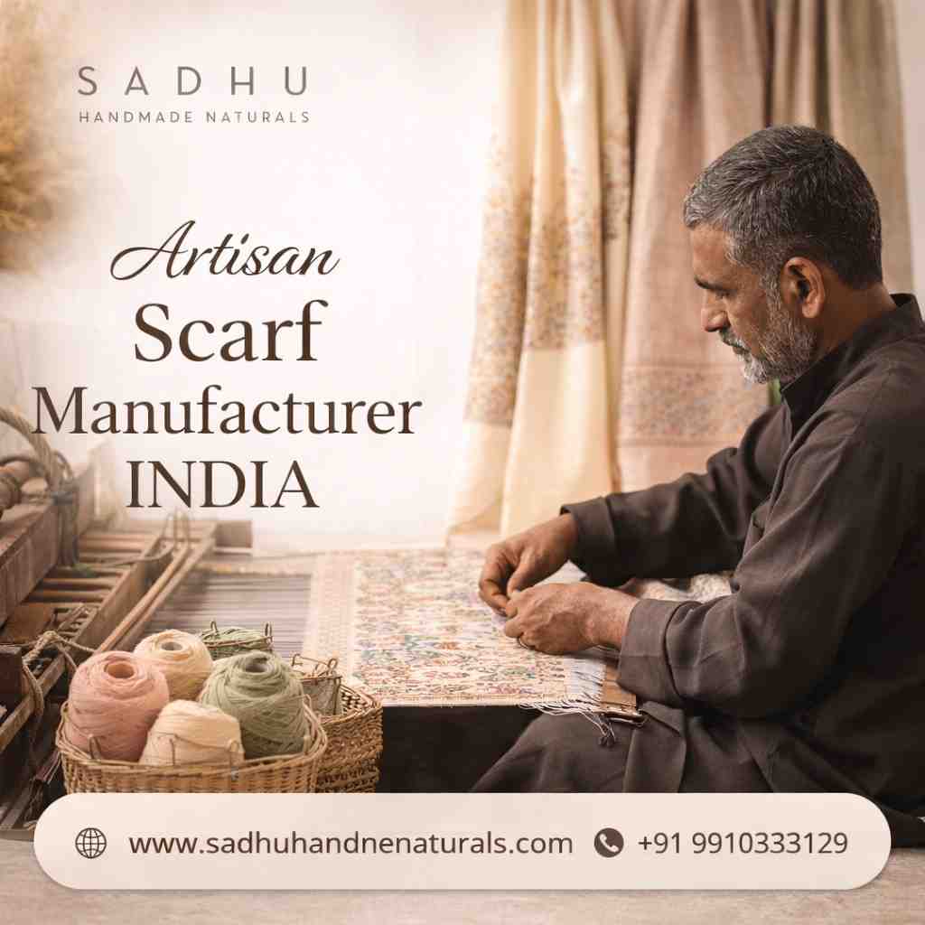 Get customized designs from an expert artisan scarf manufacturer India offering tailor-made scarf solutions. We specialize in creating unique patterns, colors, and styles based on your brand needs. Our handcrafted scarves ensure quality, elegance, and exclusivity. Ideal for fashion labels and retailers looking to build distinctive collections with reliable manufacturing support and flexible bulk ordering options.