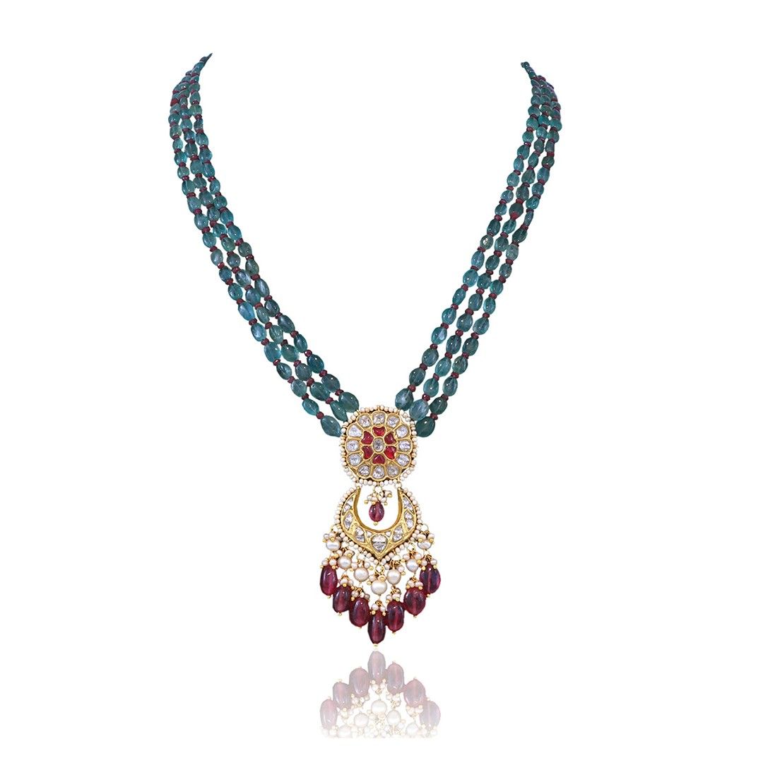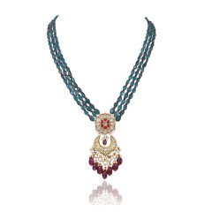 Explore the Designer Polki Collection featuring an enchanting ruby and emerald beaded diamond necklace that radiates royal charm. Perfect for weddings and grand occasions, each piece combine tradition with class. Upgrade your jewellery collection with exclusive handcrafted designs from Jadaav Jewels, where luxury and classic beauty truly shine.