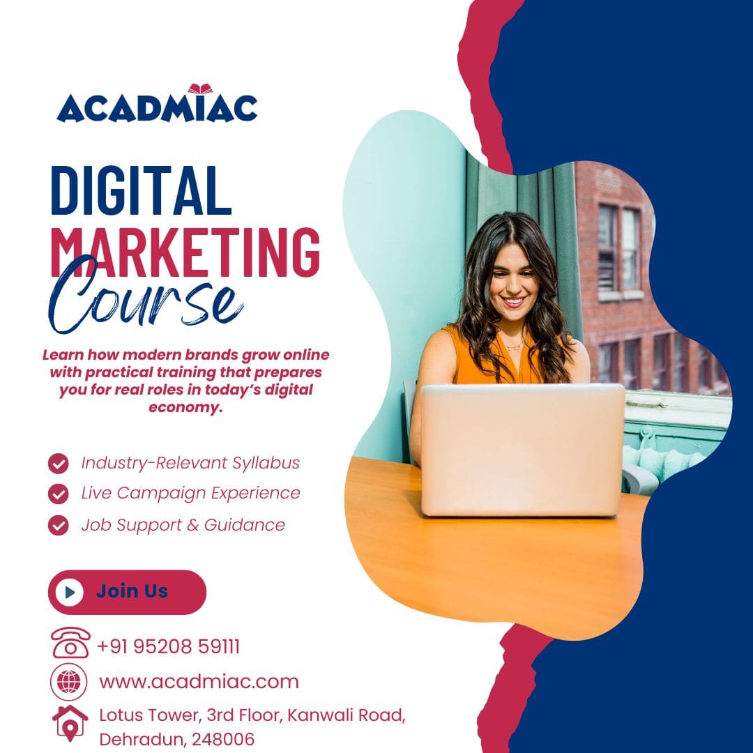 If you are looking for a digital marketing course that is in line with the needs of the industry, Acadmiac is the one that offers a well-structured training program that focuses on the practical aspect. Acadmiac, one of the top Digital Marketing Institutes in Dehradun, not only teaches the theoretical aspects of different branches of digital marketing but also imparts the practical skills required to operate in the field.