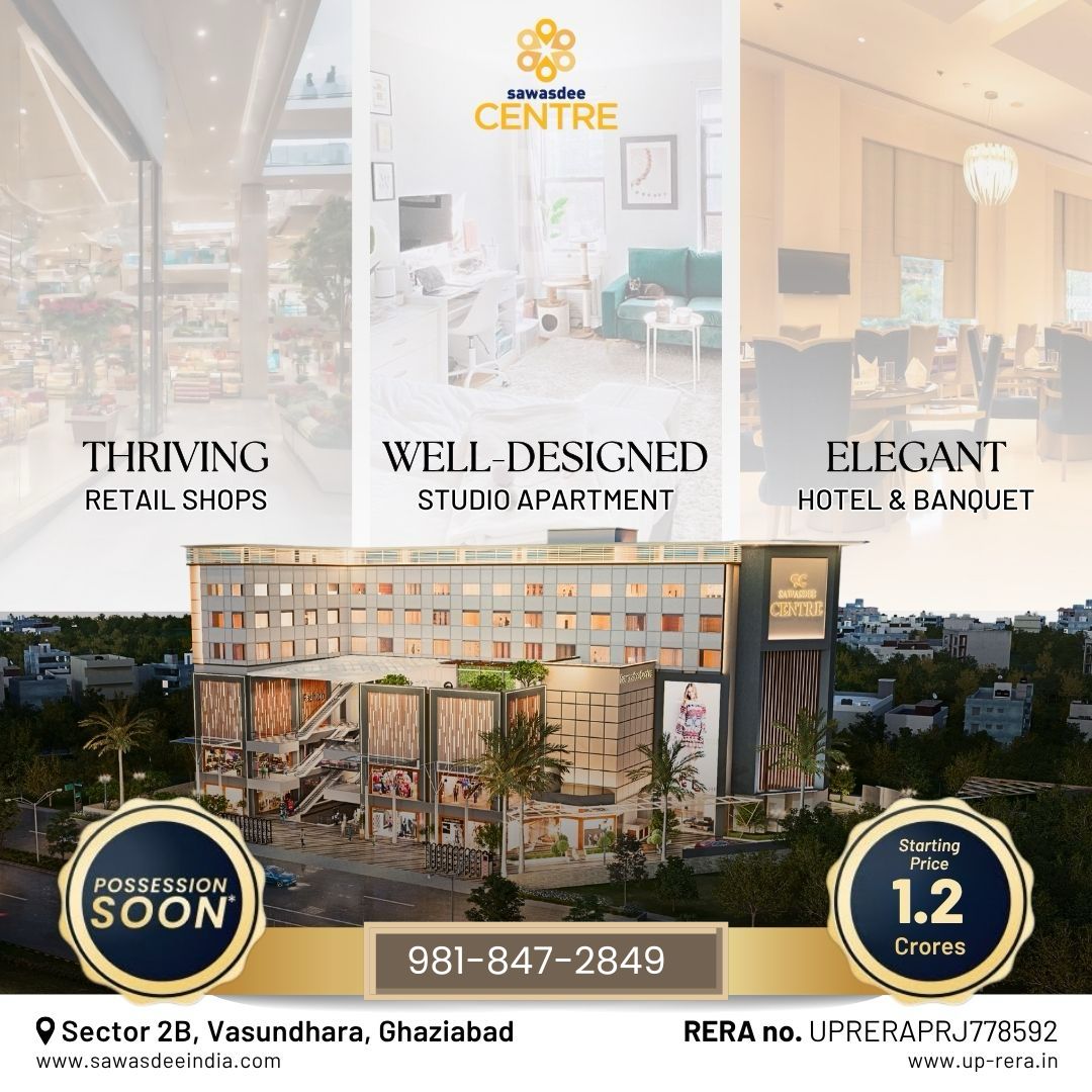 Invest in flats in Vasundhara Ghaziabad with assured monthly rental income at Sawasdee Centre. These premium studio apartments are ready-to-move and offer buyers complete peace of mind with a fixed rental guarantee. Strategically located in Vasundhara, the project ensures strong appreciation potential along with regular income flow. A perfect blend of security and returns for modern investors. ???? Call 9818472849 now to book your flat in Vasundhara with assured rental benefits.