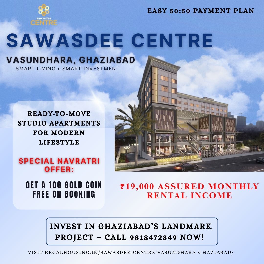 This festive season, invest in flats with gold coin offer in Ghaziabad at Sawasdee Centre. Ready-to-move studio apartments come with assured rental income and exclusive gold coin offers, making your investment more rewarding. Located in Vasundhara, these flats offer modern amenities and excellent connectivity. Limited festive offers available perfect for both end-users and investors. ???? Call 9818472849 now to book your flat in Ghaziabad with an exciting gold coin offer.