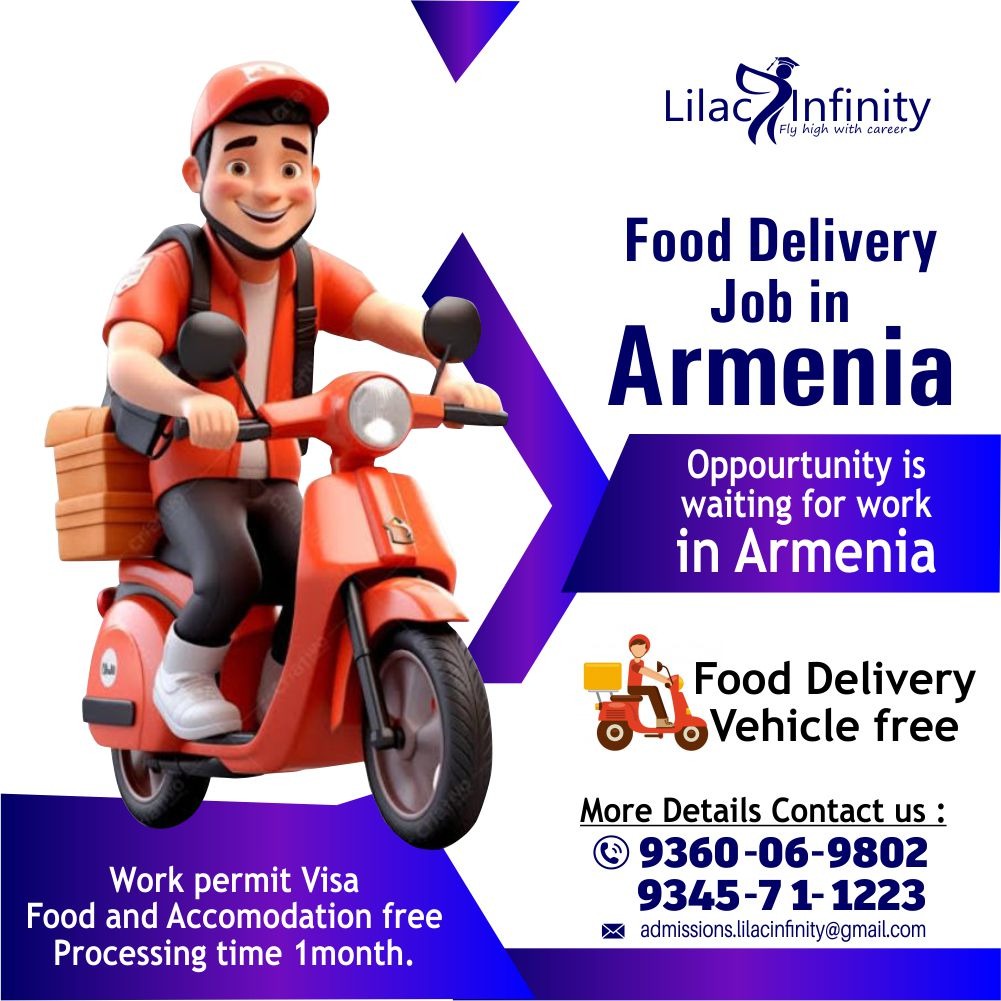 Lilac Infinity Offers Food Delivery Job Opportunities in Armenia As the demand for doorstep food delivery services grows across Armenia,Lilac Infinity connects ambitious job seekers ensuring smooth placement and work visa support. Whether youre a delivery professional eager to work abroad, Lilac Infinity ensures a smooth recruitment process for delivery job placement in Armenia. Lilac Infinity expert guidance, candidates can travel on a valid work visa and enjoy free food and accommodation, making it easier to settle into Armenia.With attractive salaries its chance to gain work experience, this opportunity is ideal for job seekers ready to build a career abroad.Launch your international career with Lilac Infinity through exciting food delivery job opportunities in Armenia!! Have questions? Were here to helpcontact us now! on Youtube: https://www.youtube.com/@LilacInfinity-j5c Instagram: https://www.instagram.com/lilac_infinity24/ Facebook: https://www.facebook.com/profile.php?id=61568635944595 website: https://www.lilacinfinity.com/ #LilacInfinityofferStudyAbroadprograms #Healthcareplacementsprograms #Pharmacist #Physiotherapists #directRecruitmenttohospitalsinGermany #UGPGProgramsinUS/UK/Europe #StudyAbroadprograms #RussianMedicine #SingaporeIndustrialTrainingandplacements #DomesticAdmissions #studyMbbsinRussia #Germanhospitalplacements