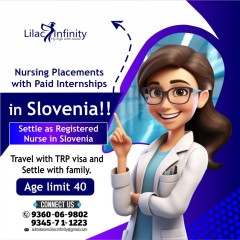 Nursing Placement Program in Slovenia!! Language Training A1 to B2 levels with paid Internship. Settle as a registered Nurse. Get Offer Letter and Travel with in 4 months. Travel with TRP visa and settle with Family. Age limit 20-46. Check Eligibility now!! Contact us: 9360069802