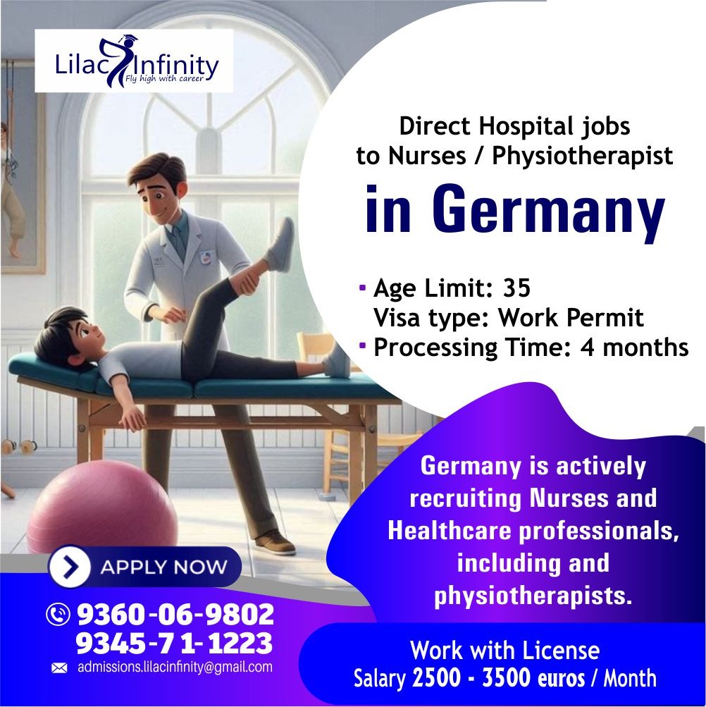 Lilac infinity offer Germany is actively recruiting healthcare professionals, including pharmacists and physiotherapists. Direct Hospital Recruitment | Competitive Salary Pharmacists play essential roles in hospital pharmacies, assisting with medication management, and patient education. Physiotherapists are needed to work in hospitals, clinics, and specialized rehabilitation facilities where they assist with patient recovery and mobility support. Contact us: 9360069802