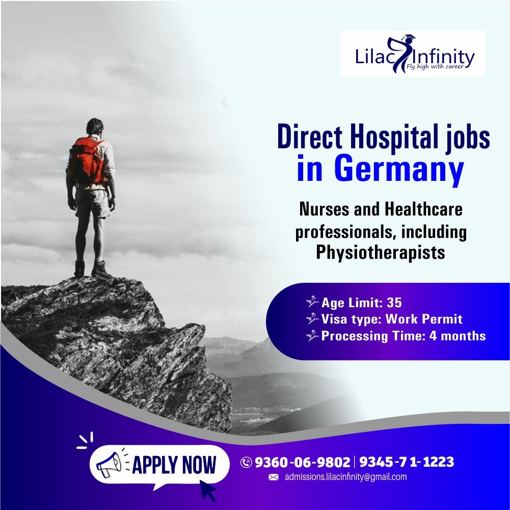 Lilac Infinity Direct Jobs Germany is actively recruiting healthcare professionals, including pharmacists and physiotherapists. Wrork with License. Salary 2500 - 3500 euros per month. Travel with in 4 months. 1500+ hospitals in Germany!! Check Eligibility now!!!To know more Contact us: 9360069802