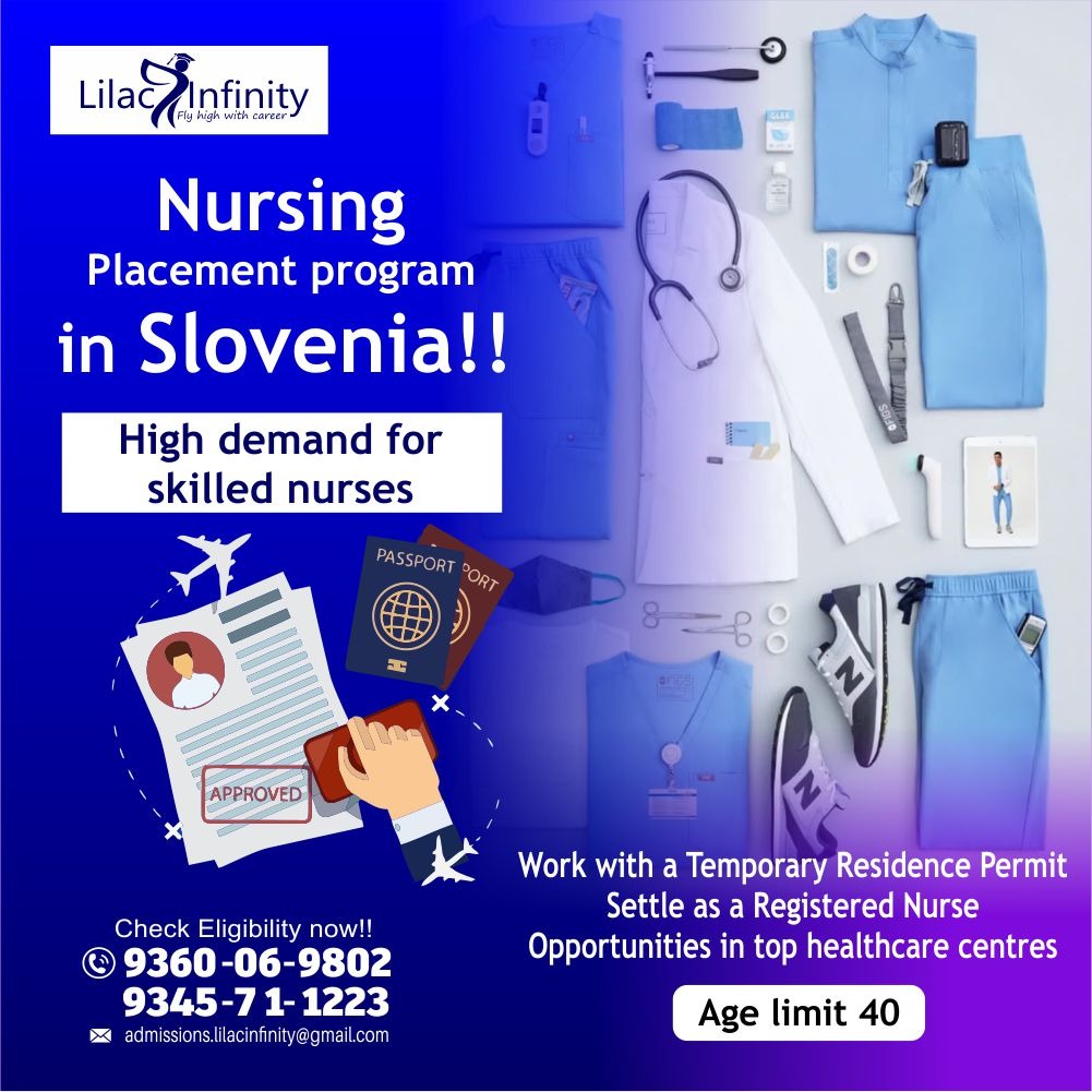 In a world where meaningful travel matters more than ever, Slovenia tourism invites you to explore a land where every journey respects nature, celebrates culture,promotes responsible exploration, and ensures every travelers journey is both unforgettable and meaningful.Whether you're planning a Slovenia trip for adventure, culture, or relaxation, a visit to Bled Castle is a must-see highlight and a true gem of Slovenia tourism based education. Tucked between Italy, Austria and Croatia, Slovenia is often called Europes best-kept secret,Lilac Infinity offers Nursing jobs in Slovenia.From Bled Castle to the historic streets of Ljubljana,Slovenia is full of opportunities to explore and feel at home. Through Lilac Infinity is a trained leading overseas admission office that provides Slovenia Nursing Jobs and Healthcare Placement Program, including clinical training, real time medical practice and long-term career opportunity across 27 schengen countries. So skilled professionals can confidently take the next step in your nursing career. This Nursing Placement program Slovenia offers a long-term settlement with the right guidance of Lilac Infinity leading overseas education admission office, your nursing job in Slovenia can lead to permanent residency with eligibility for family migration to settle in Europe within 12 months. One of the programs valuable advantages is its residency process within 4 months.Eligible candidates receive a Temporary Residence Permit (TRP), allowing them to live and work legally in Slovenia.