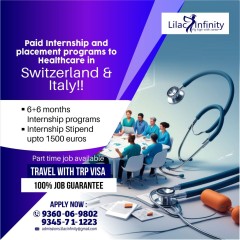 Thinking about a healthcare career abroad? Lilac Infinity Kollam invites you to join our exclusive, paid healthcare internship program in the Switzerland & Italy Healthcare Sector! Our Healthcare Placement Program, designed for medical and nursing students, offers paid internships, guaranteed job placement, and part-time work opportunities.During your internship,gain hands-on clinical experience and receive an stipend of up to 1500 through this nursing adaptation program of Lilac Infinity. Why Switzerland? One of Europes most peaceful countries is Switzerland, a place where nature and modern life exist in perfect harmony and surrounded by the majestic Alps and blue lakes. Switzerland is known for its safety, discipline, and high standard of living. About Italy: Lilac Infinity is trained leading overseas admission office to guide your journey from student to healthcare professional. Aspiring individuals toward international success through an expertly structured Healthcare Placement Program, real-time placements, and affordable. Our young expert counsellors assist your visa approval success from documentation to the interview. Lilac Infinity helps you obtain your TRP and Work Permit with 100% job Placement, which leads to living and working in European countries. Visit our website: https://www.lilacinfinity.com/