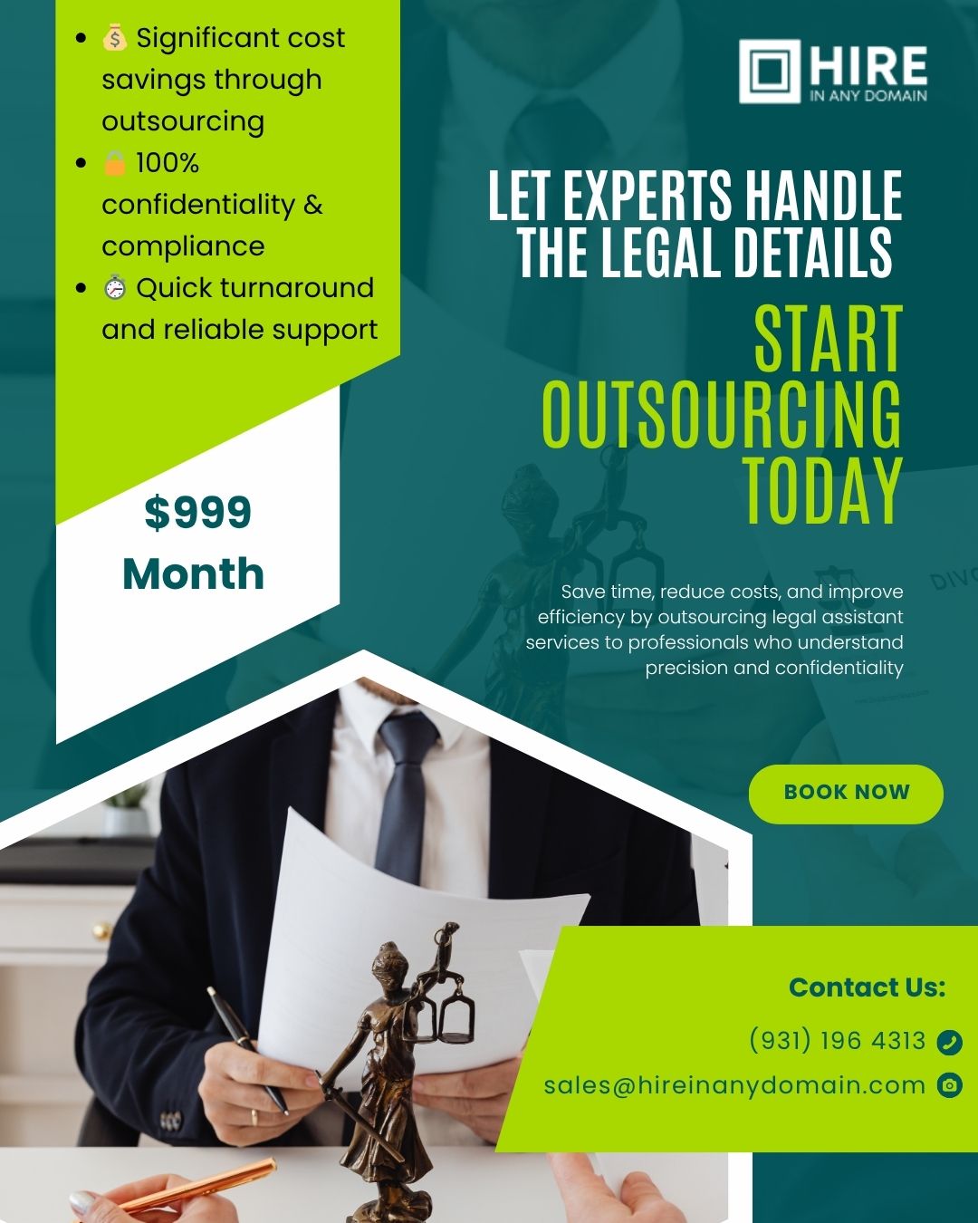 Streamline your legal operations by choosing to outsource legal assistants with Hire in Any Domain. Our trained professionals handle legal research, documentation, case management, and administrative tasks with precision and confidentiality. Save time, cut costs, and focus on core legal strategy by leveraging skilled remote legal assistants from India.