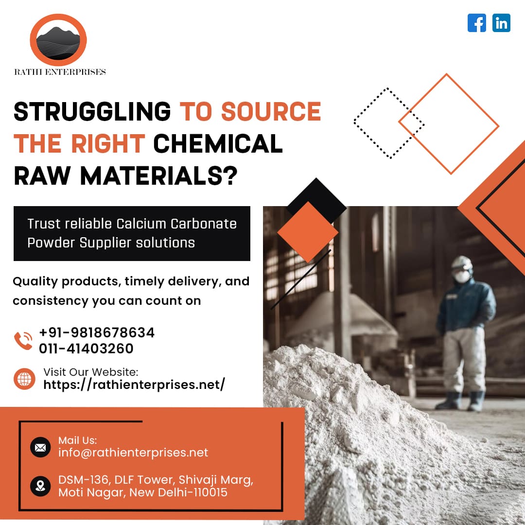 Looking for reliable chemical raw material partners for your industry? Rathi Enterprises based in India is known for its consistency and high-quality. We are known among the top Bio Fillers Suppliers in India, delivering sustainable quality products with consistency, reliability, and tailored solutions for diverse industries across world. Our product line also makes us a prominent Calcium Carbonate Suppliers offering superior quality, reliable supply, and industry-specific solutions. Stay ahead in production and growthconnect with Rathi Enterprises today!