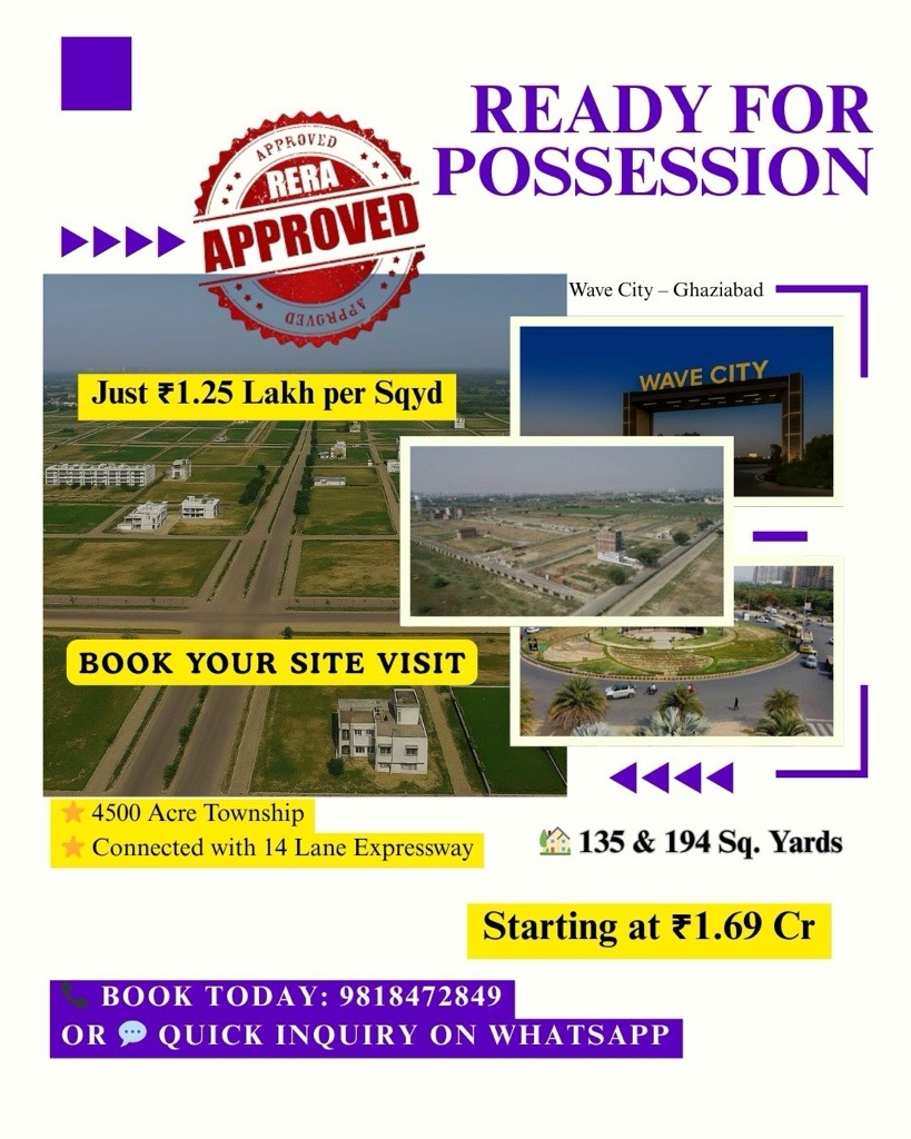 Looking for a plot in Wave City Ghaziabad? Build your dream home in a smart township offering world-class infrastructure, seamless connectivity, and secure surroundings. Strategically located on NH-24, Wave City is designed with wide roads, parks, and modern facilities to ensure comfortable living. Whether for personal use or investment, plots here promise excellent returns and future growth. With top-class amenities, schools, and healthcare facilities nearby, Wave City is a perfect choice. ???? Call 9818472849 today to book your plot in Wave City Ghaziabad.