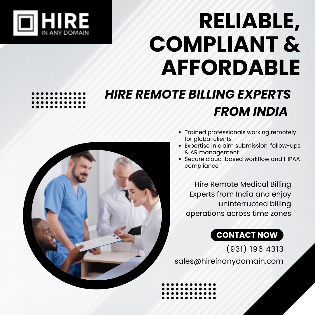 Hire remote medical billing experts in India through Hire in Any Domain to manage your practice efficiently. Our professionals handle claims, coding, invoicing, and reporting remotely, ensuring timely reimbursements and reduced administrative workload. Affordable, skilled, and reliable, our remote billing specialists help healthcare providers maintain smooth financial operations across time zones.